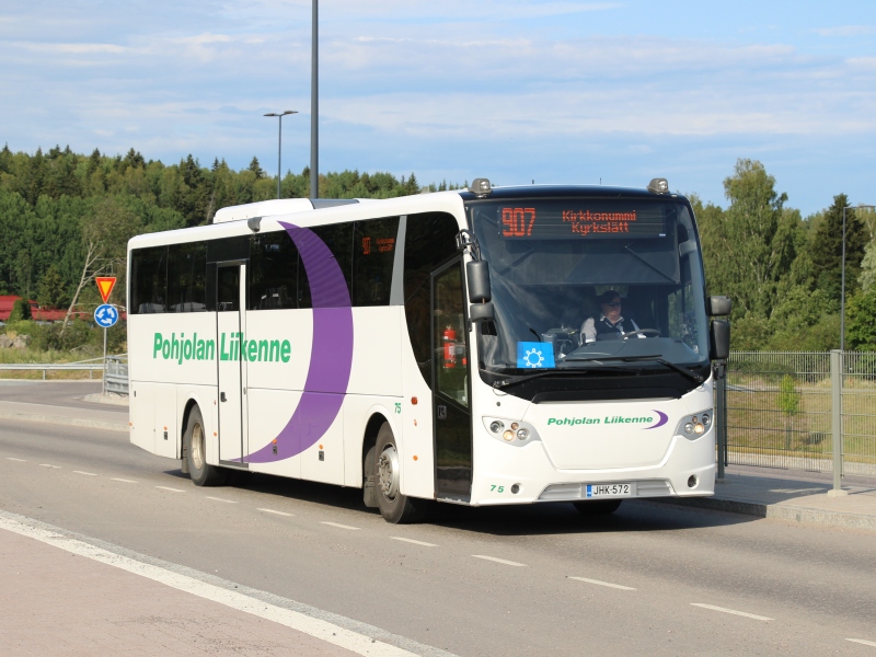 Tämä entinen Finnair-bussi tuotiin Kirkkonummen liikenteeseen elokuussa 2018. Siinä oli Finnair-ajoilta vielä matkatavarateline matkustamossa. Bussi poistui HSL-liikenteestä kesäliikenteen 2021 alettua.